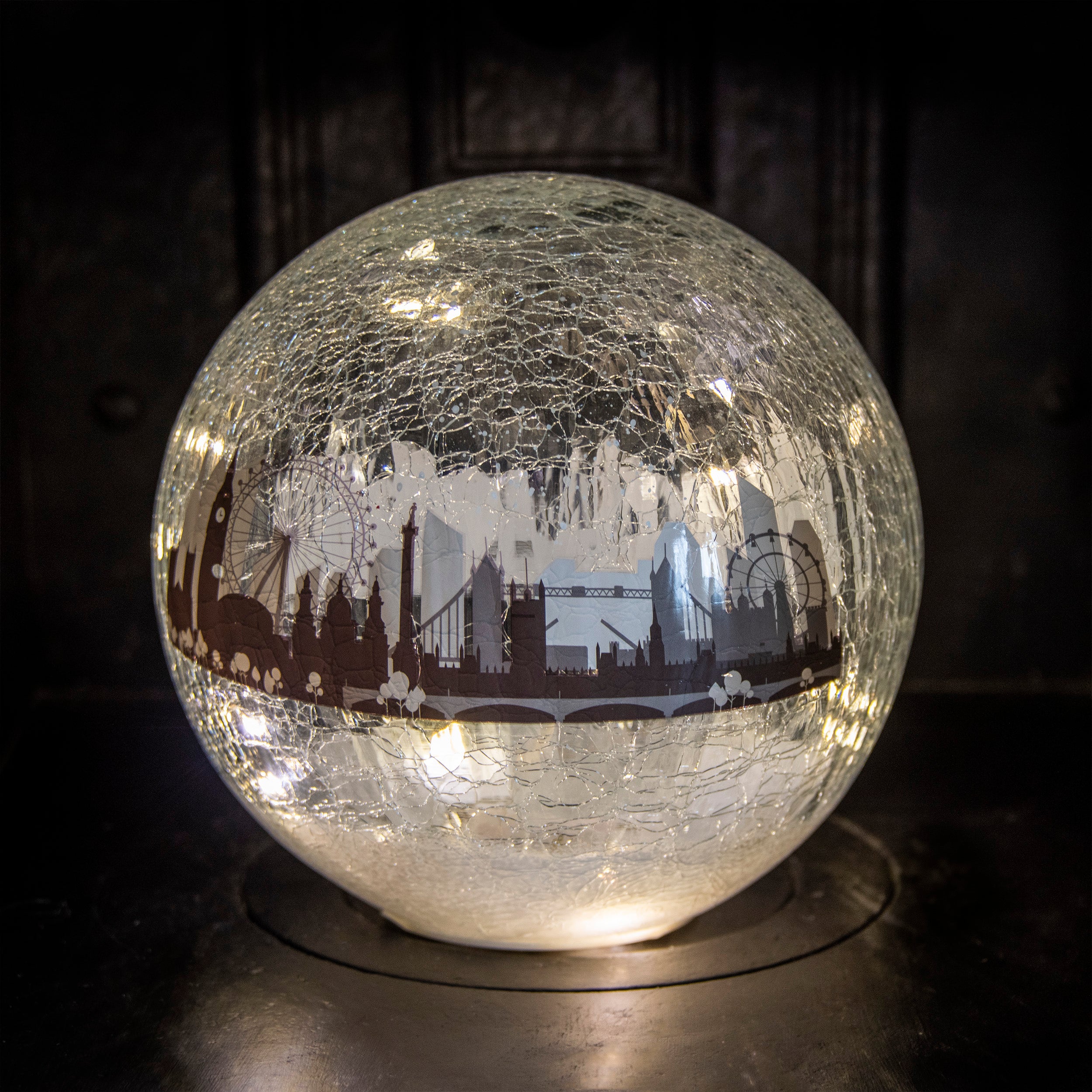 1 x Crackle Effect LED Lit Ball with London Scene