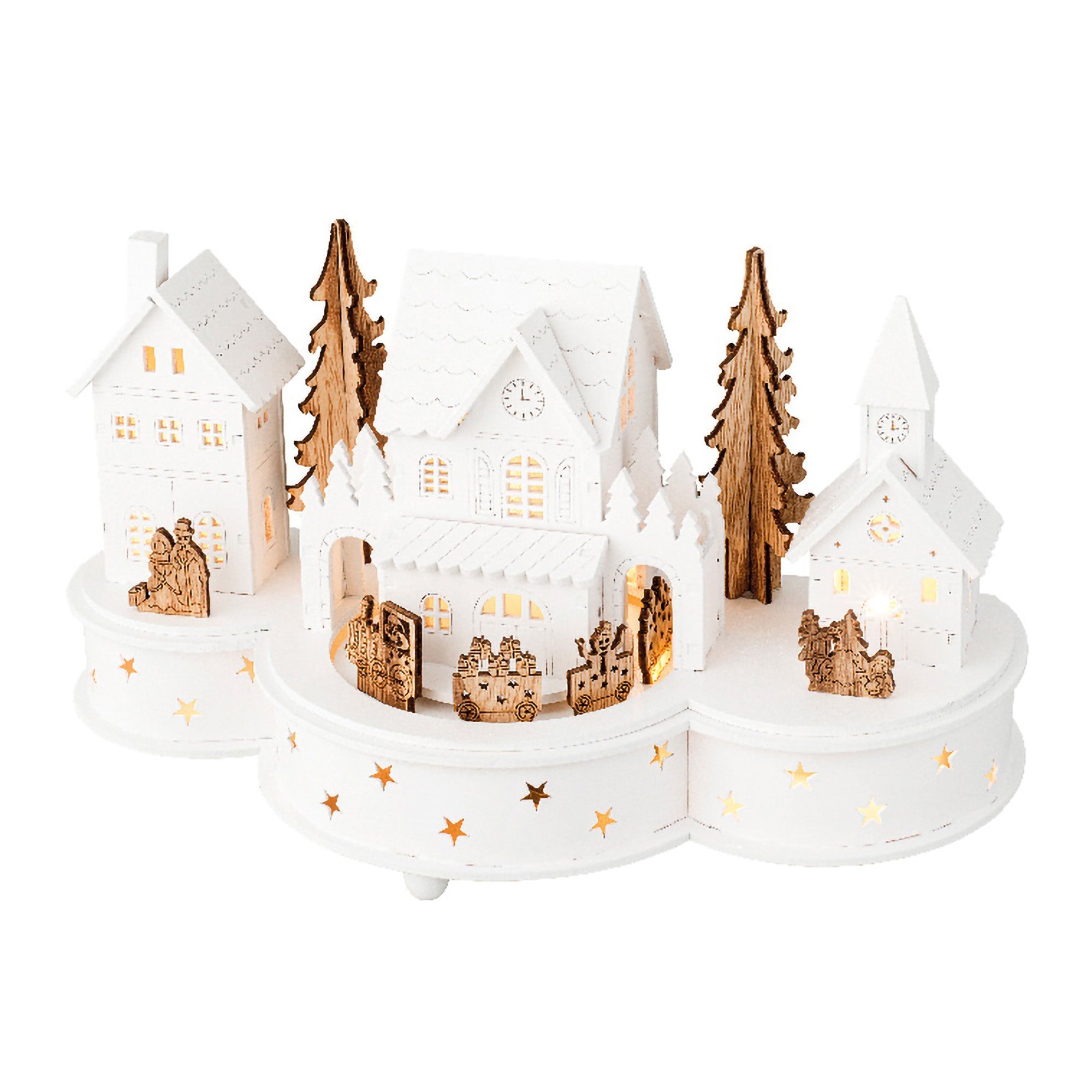 Battery Operated Lit LED House with Train and Church Scene