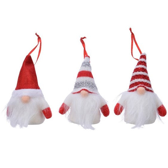Pack of 3 Hanging Christmas Gonks Tree Decorations