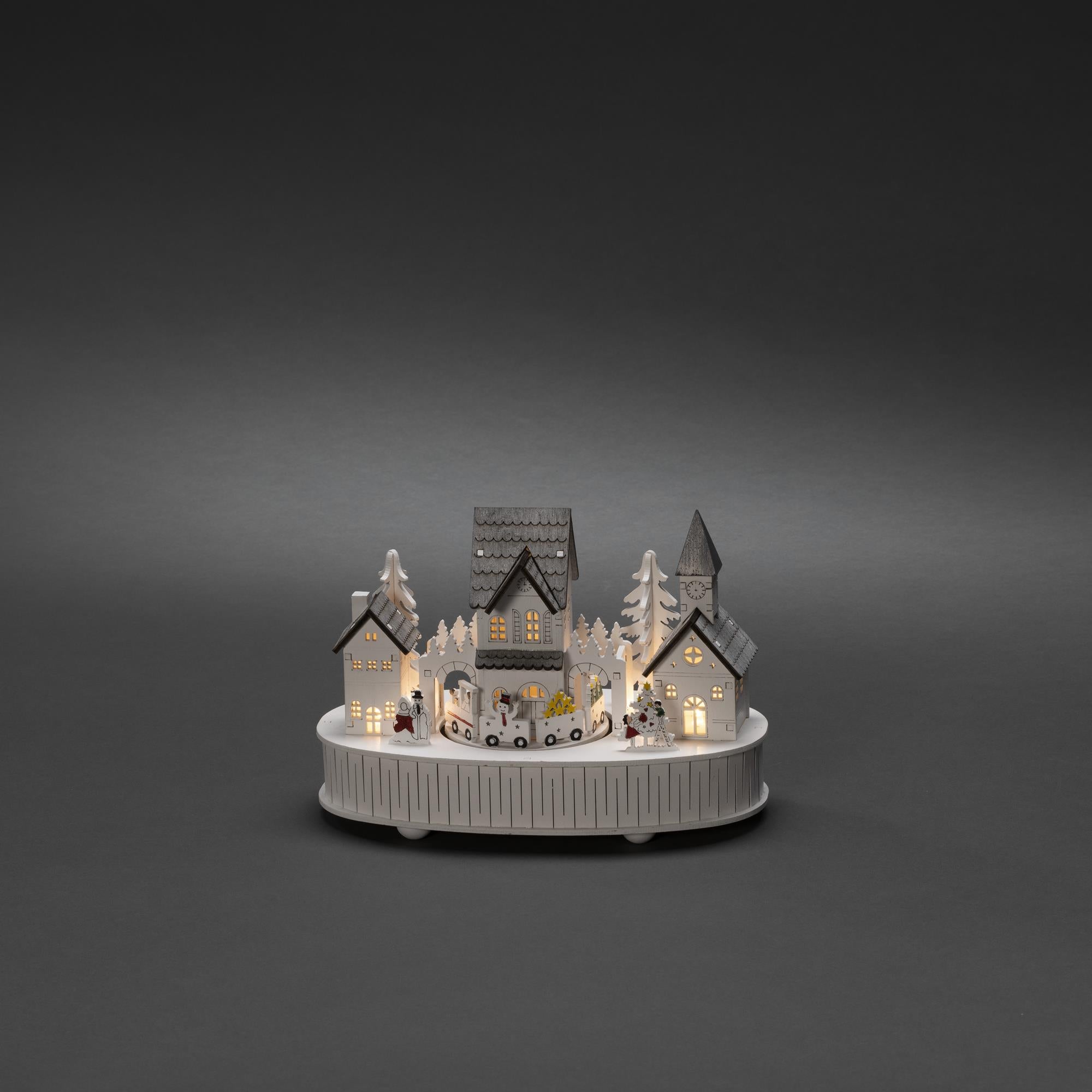 LED Lit Wooden Church and House Christmas Scene