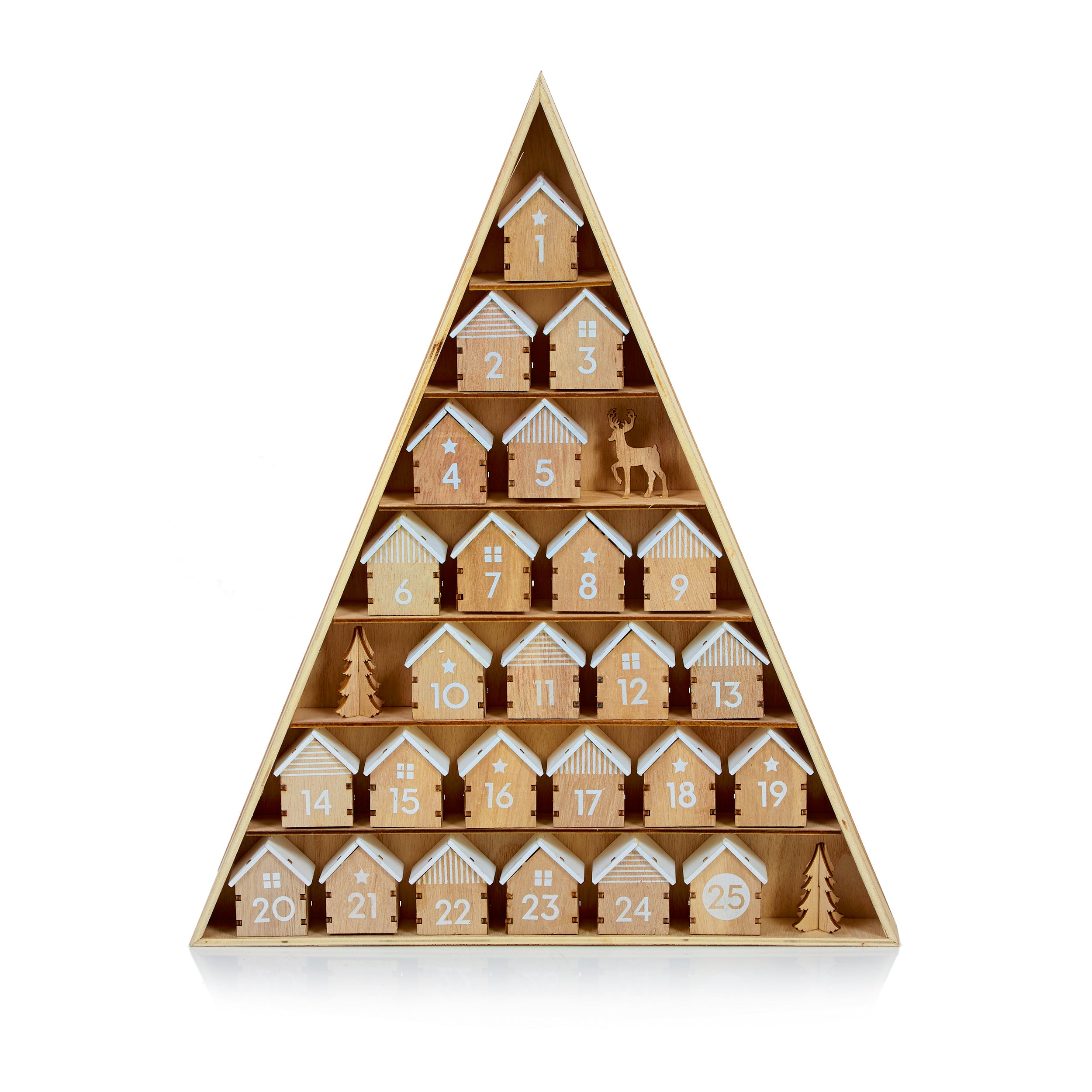 1 x Snowy Alpine Wooden Advent Calendar Christmas Tree