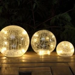 New ๐ฅฐ Noma Set Of 3 Pre Lit Glass Crackle Ball ~ Warm White & Ice White Switchable LEDs ๐ฅ