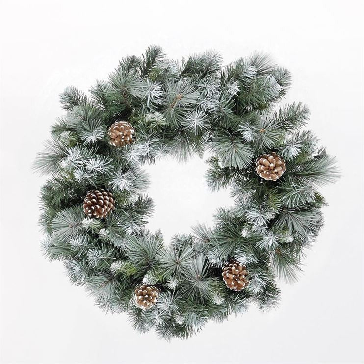 60cm Frosted Glacier Wreath with 140 Tips 6 Pine Cones Green