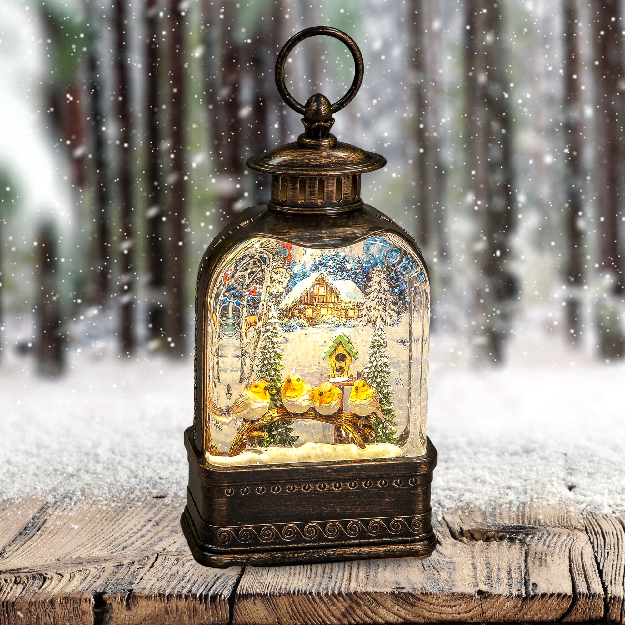 This stunning Robin and Cabin Scene Water Lantern is sure to brighten up your festive display this season!